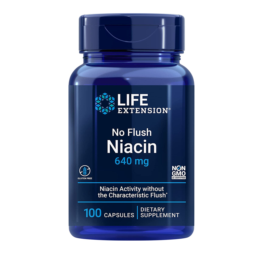 Life Extension No Flush Niacin Inositol Hexanicotinate 800 mg / 100 Capsules - ผลิตภัณฑ์เสริมอาหารไนอาซิน (วิตามินบี 3) เป็นสารอาหารที่จำเป็น มีหน้าที่สำคัญในการส่งเสริมสุขภาพหัวใจและหลอดเลือด สนันสนุนระบบประสาทและสุขภาพโดยรวม บางคนรับประทานไนอะซินเพื่อรักษาภาวะขาดวิตามินบี 3 แต่คนส่วนใหญ่รับประทานเพื่อช่วยลดระดับคอเลสเตอรอลและไตรกลีเซอไรด์ในเลือด ไนอะซินจะทำงานได้ดีที่สุดเมื่อรับประทานร่วมกับอาหารที่มีไขมันต่ำ และคอเลสเตอรอลต่ำ ไนอะซินถูกใช้เป็นวิตามินเสริมเพื่อรักษาอาการขาดไนอะซินตามธรรมชาติในร่างกาย เพื่อลดความเสี่ยงของการเกิดหัวใจวายในคนที่มีคอเลสเตอรอลในเลือดสูงซึ่งเป็นโรคหัวใจวายอยู่แล้ว และใช้เพื่อรักษาโรคหลอดเลือดหัวใจ Niacin ที่มีฟอร์ม Nicotinic acid สามารถทำให้เกิดอาการไม่สบายได้ แต่ No Flush Niacin มีรูปแบบพิเศษของ Niacin, inositol hexanicotinate ซึ่งประกอบด้วยไนอาซิน 6 โมเลกุลที่เชื่อมโยงทางเคมีกับโมเลกุลของ inositol