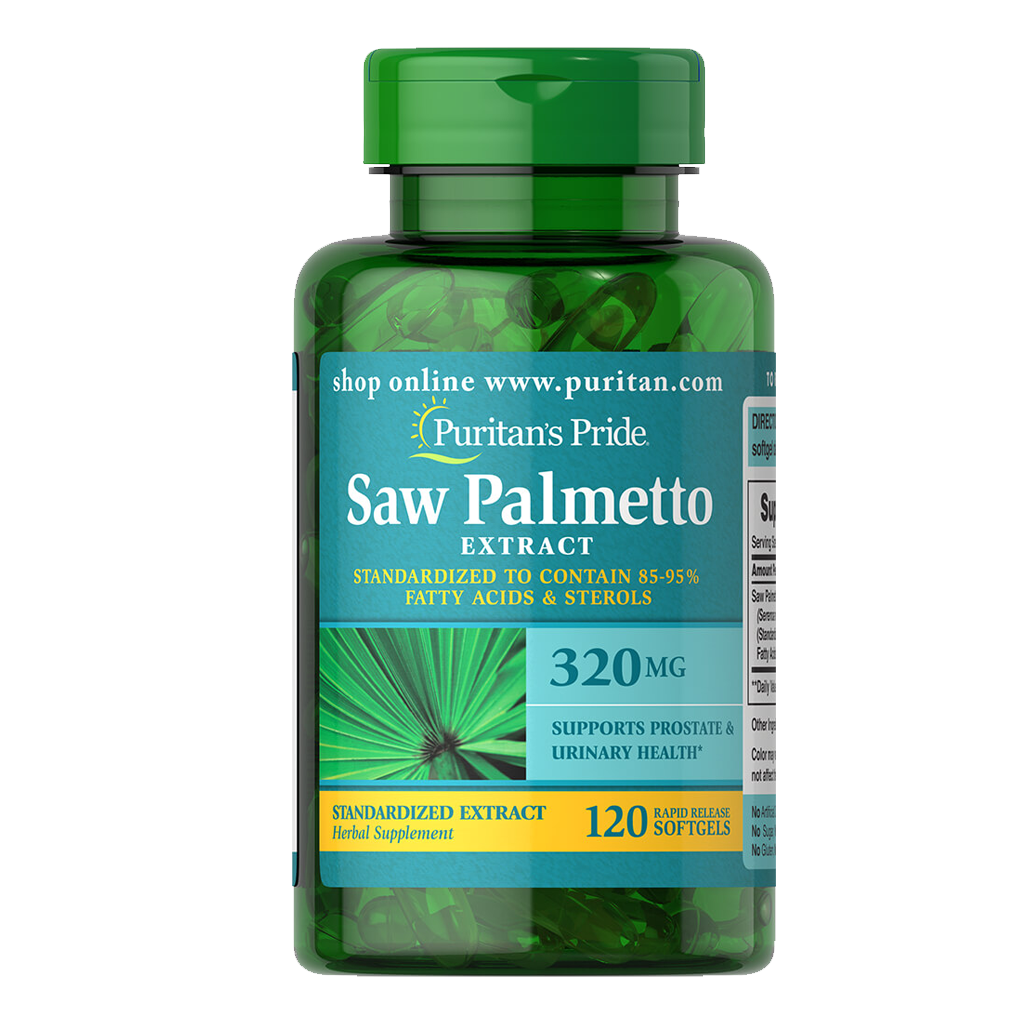 Puritan’s Pride Saw Palmetto Standardized Extract 320 mg / 120 Softgels สกัดได้จากผลปาล์มแห้ง(ปาล์มใบเลื่อย หรือปาล์มแคระ) มีสารประกอบที่เรียกว่า Cyto-sterol ซึ่งออกฤทธิ์เหมือนสารต้านแอนโดรเจน หรือสารต้านฮอร์โมนเพศชาย Saw palmetto ใช้ในการรักษาคนไข้ที่มีอาการต่อมลูกหมากโต มากกว่า 2 ล้านคนในประเทศอเมริกา ในการรักษาอาการต่อมลูกหมากโต (Benign Prostatic Hypertrophy -BPH) พบว่า Saw palmetto จะช่วยลดขนาดของต่อมลูกหมากให้เล็กลง และลดการอักเสบ ปัสสาวะคั่ง จากอาการที่ ต่อมลูกหมากโต ช่วยให้ผู้ที่มีภาวะต่อมลูกหมากโต ที่มีอาการน้อย ถึงปานกลาง มีอาการดีขึ้น ลดอาการการถ่ายปัสสาวะลำบาก ปัสสาวะออกได้ดีขึ้น ลดความถี่ในการต้องลุกขึ้นถ่ายปัสสาวะในตอนกลางคืน ต่อมลูกหมาก เป็นอวัยวะหนึ่งของระบบสืบพันธุ์ที่พบในเพศชายเท่านั้น อยู่ติดกับกระเพาะปัสสาวะ และรอบท่อปัสสาวะส่วนต้น มีลักษณะคล้ายลูกเกาลัด กว้าง 4 เซนติเมตร ยาว 3 เซนติเมตร และหนา 2 เซนติเมตร ทำหน้าที่สร้างของ เหลว และสารที่หล่อเลี้ยงตัวอสุจิให้แข็งแรงเพื่อให้ตัวอสุจิมีความสมบูรณ์ที่จะ ทำหน้าที่ในการสืบพันธุ์